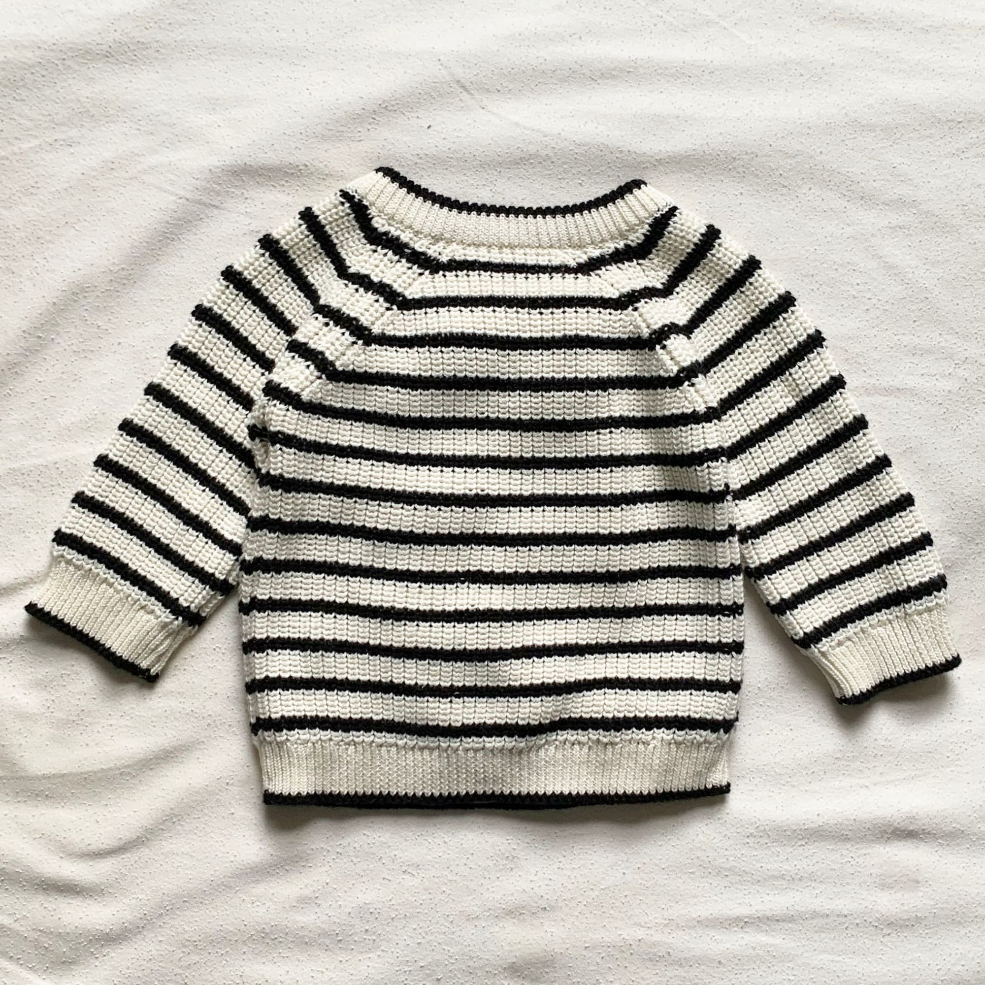 See how the stripe on the jumper is knitted in chunky rib texture, with the stripes matching perfectly along the armhole.