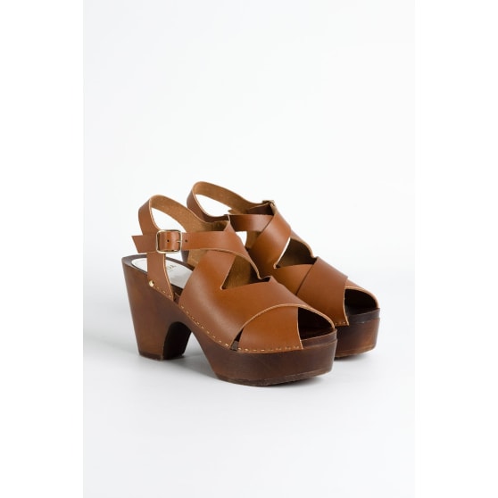 Les sabots sandales YALTA, fabriqués en cuir de vachette pleine fleur à tannage végétal, sont relevés par de larges lanières croisées pour un maintien parfait.