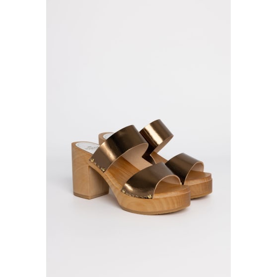 Les sabots mules YANIS LAMINATO, fabriqués en cuir de vachette pleine fleur à tannage végétal, sont composés de deux lanières enveloppant le pied pour un maintien parfait.