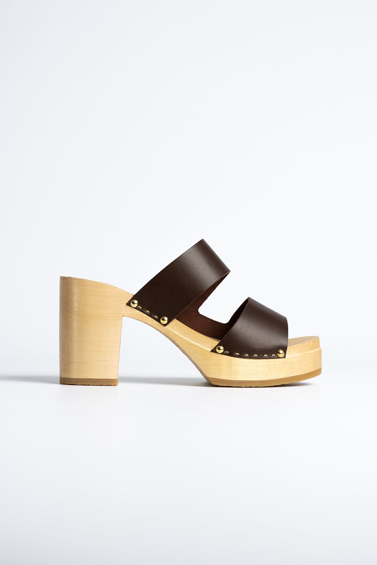 Les sabots mules YANIS, fabriqués en cuir de vachette pleine fleur à tannage végétal, sont composés de deux lanières enveloppant le pied pour un maintien parfait.