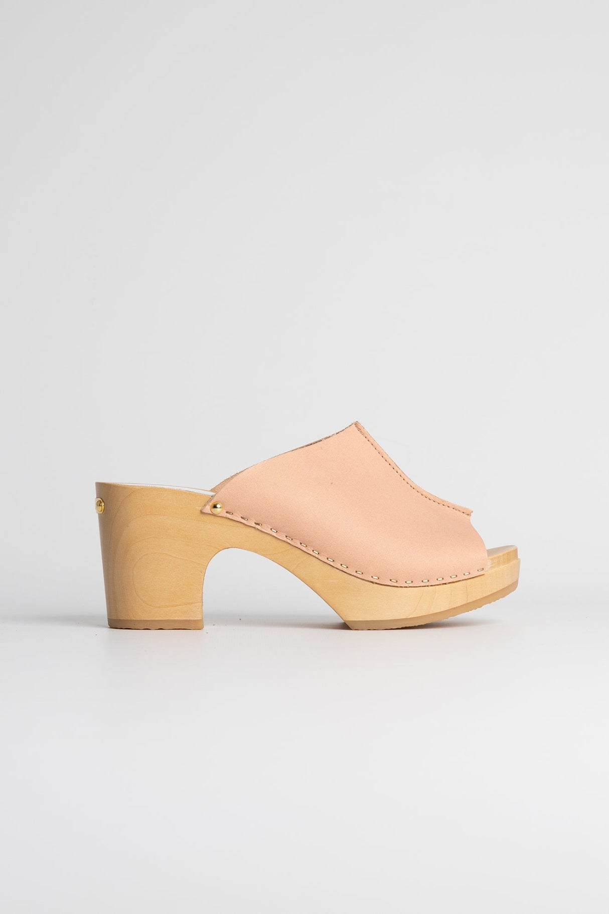 Les sabots mules YDOL, fabriqués en cuir de vachette pleine fleur à tannage végétal, sont relevés d'une jolie couture inversée sur le dessus.