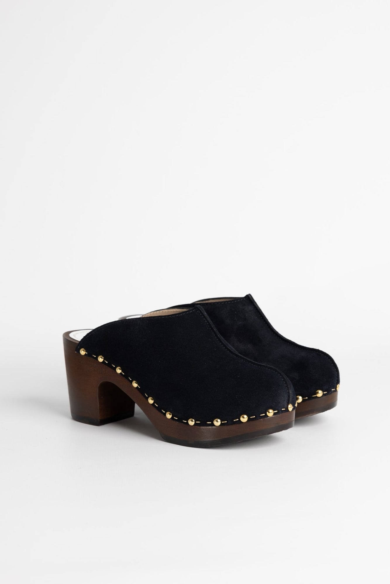 Profond et élégant, le YNDIES VELVET NAVY s?impose comme un incontournable du vestiaire d?hiver. Fabriqué en croûte de vachette velours marine, doublé en pleine fleur de veau, il offre un toucher soyeux et une teinte bleu nuit qui se marie aussi bien avec des tons neutres que colorés. La couture inversée sur le dessus lui donne ce petit twist artisanal qui fait toute la différence. Monté sur une semelle en bois de tilleul ciré, il repose sur un talon de 7,5 cm confortable et stable. Ses 42 clous dorés semi-bombés, posés un à un à la main, signent un travail de grande précision. Léger, pratique à enfiler et résolument intemporel, il se porte aussi bien pieds nus qu?avec des chaussettes, en toute saison.