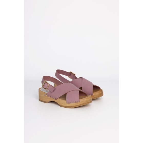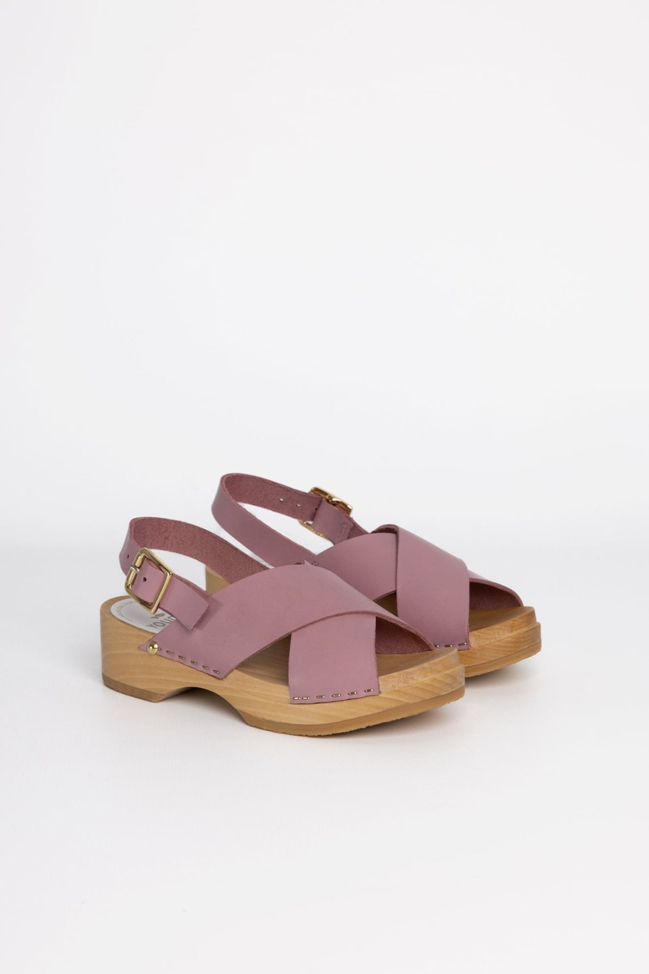 Les sabots sandales YRUN KIDS, fabriqués en cuir de vachette pleine fleur à tannage végétal, sont composés de deux larges lanières croisées enveloppant le coup de pied pour un maintien parfait.
