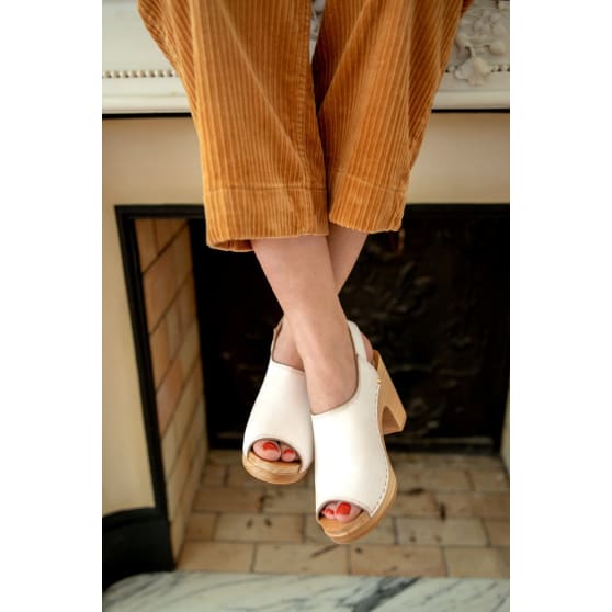 Les sabots sandales YVETTE, fabriqués en cuir de vachette pleine fleur à tannage végétal, sont composés d'une large lanière enveloppant le pied pour un maintien parfait.