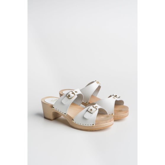Les sabots sandales YVONNE, fabriqués en cuir de vachette pleine fleur à tannage végétal, sont relevés par un joli jeu de lanières pour un maintien parfait.