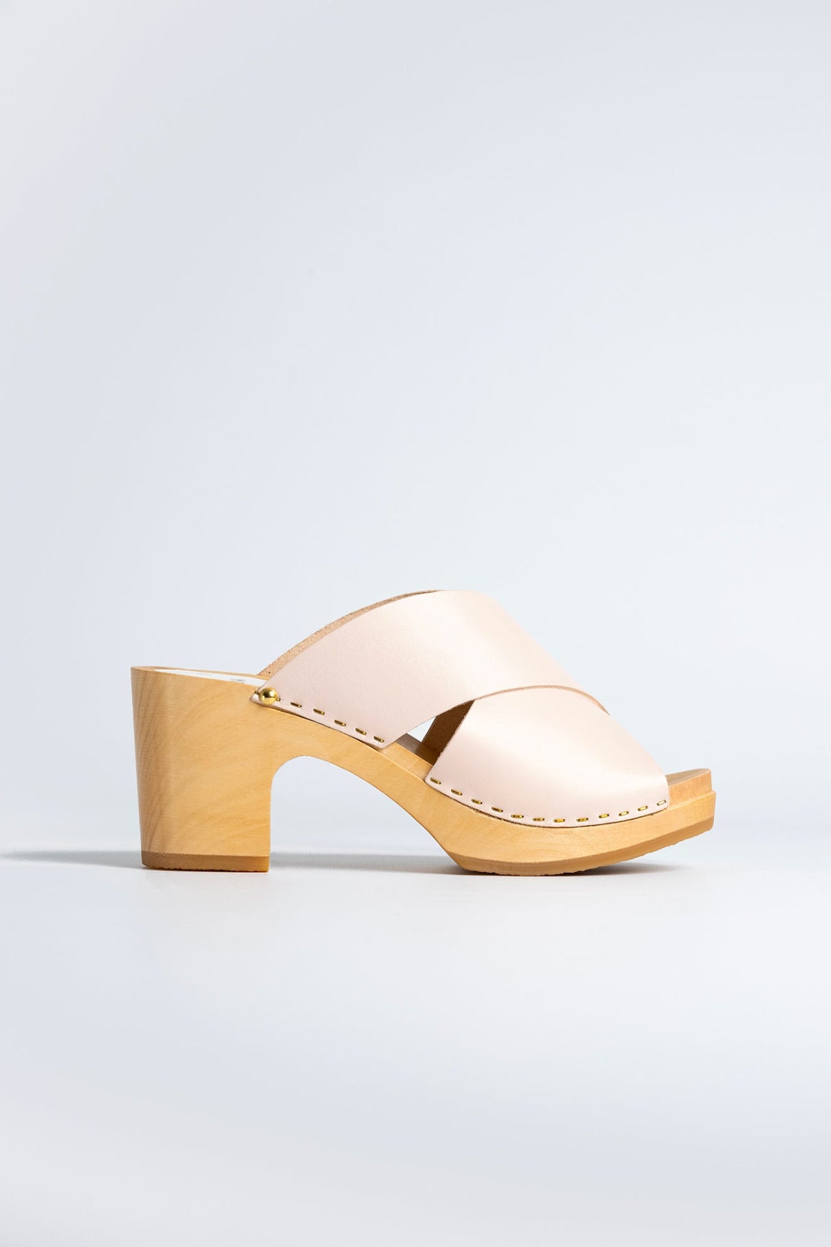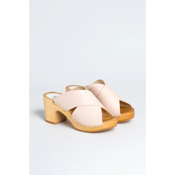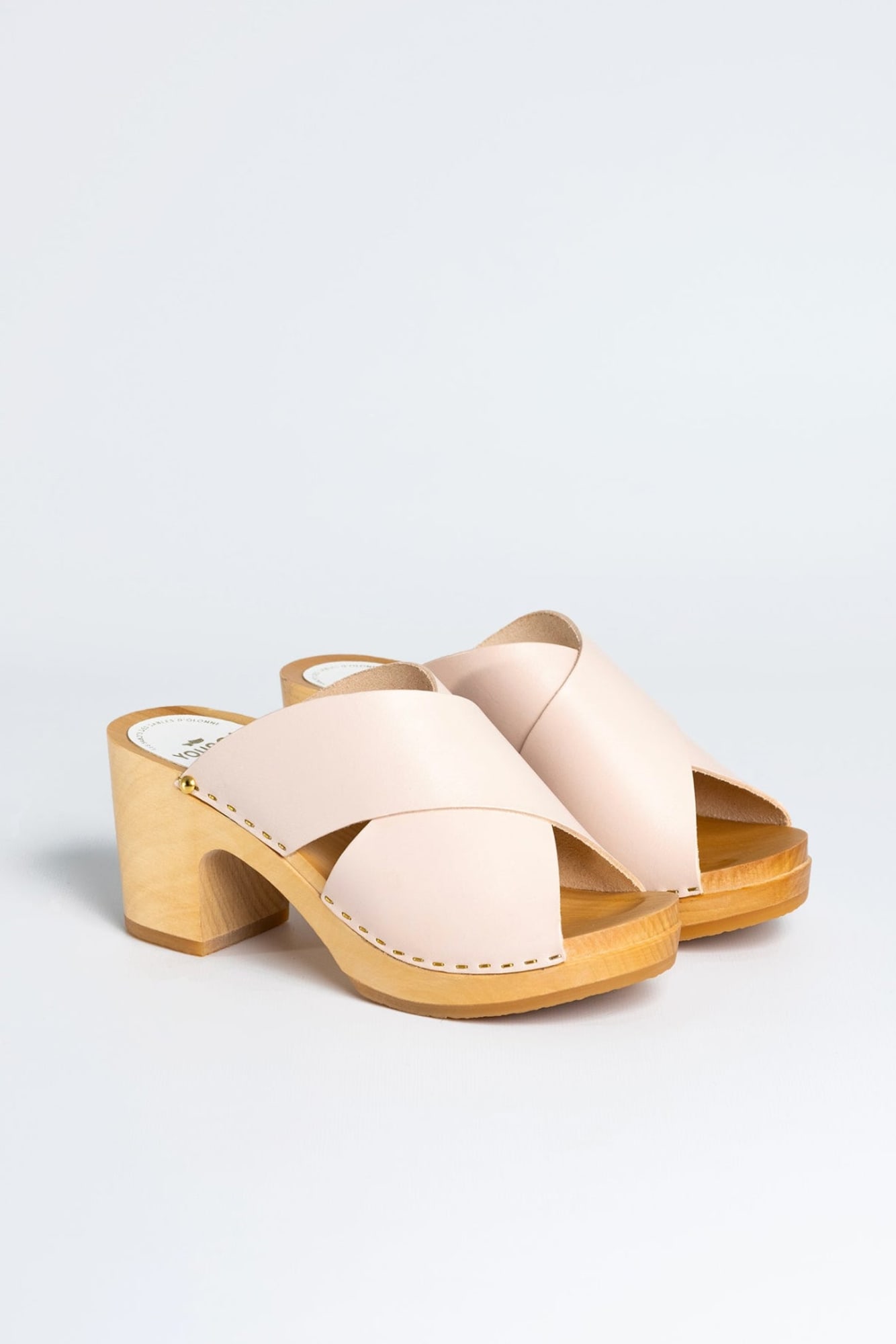 Les sabots mules YZIS, fabriqués en cuir de vachette pleine fleur à tannage végétal, sont composés de deux larges lanières croisées enveloppant le coup de pied pour un maintien parfait.