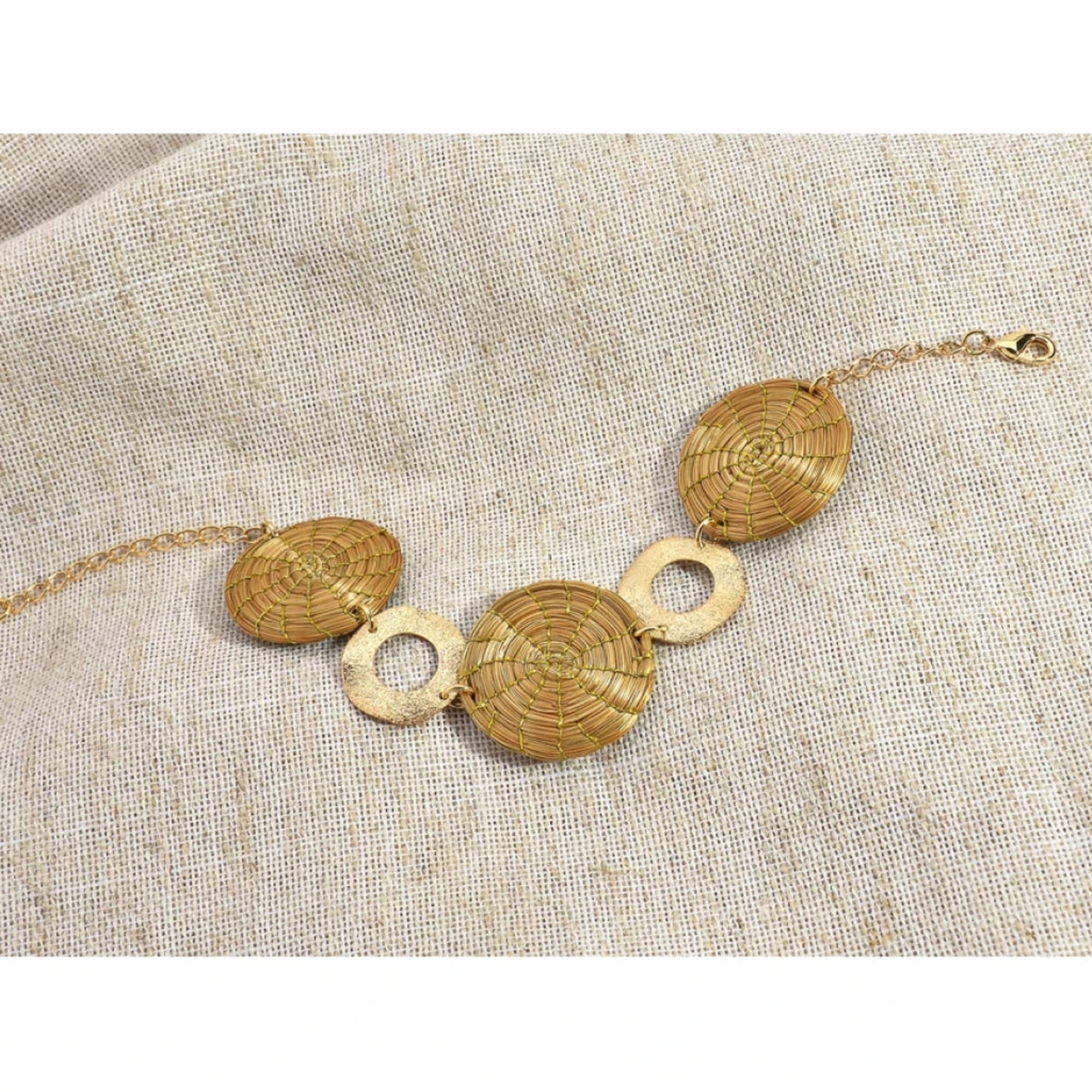 Two hoops of matte metal interspersed with three mandalas of Golden Grass, vegetable gold, form an exclusive piece, handcrafted and 18ct gold plating that brings nature to you.