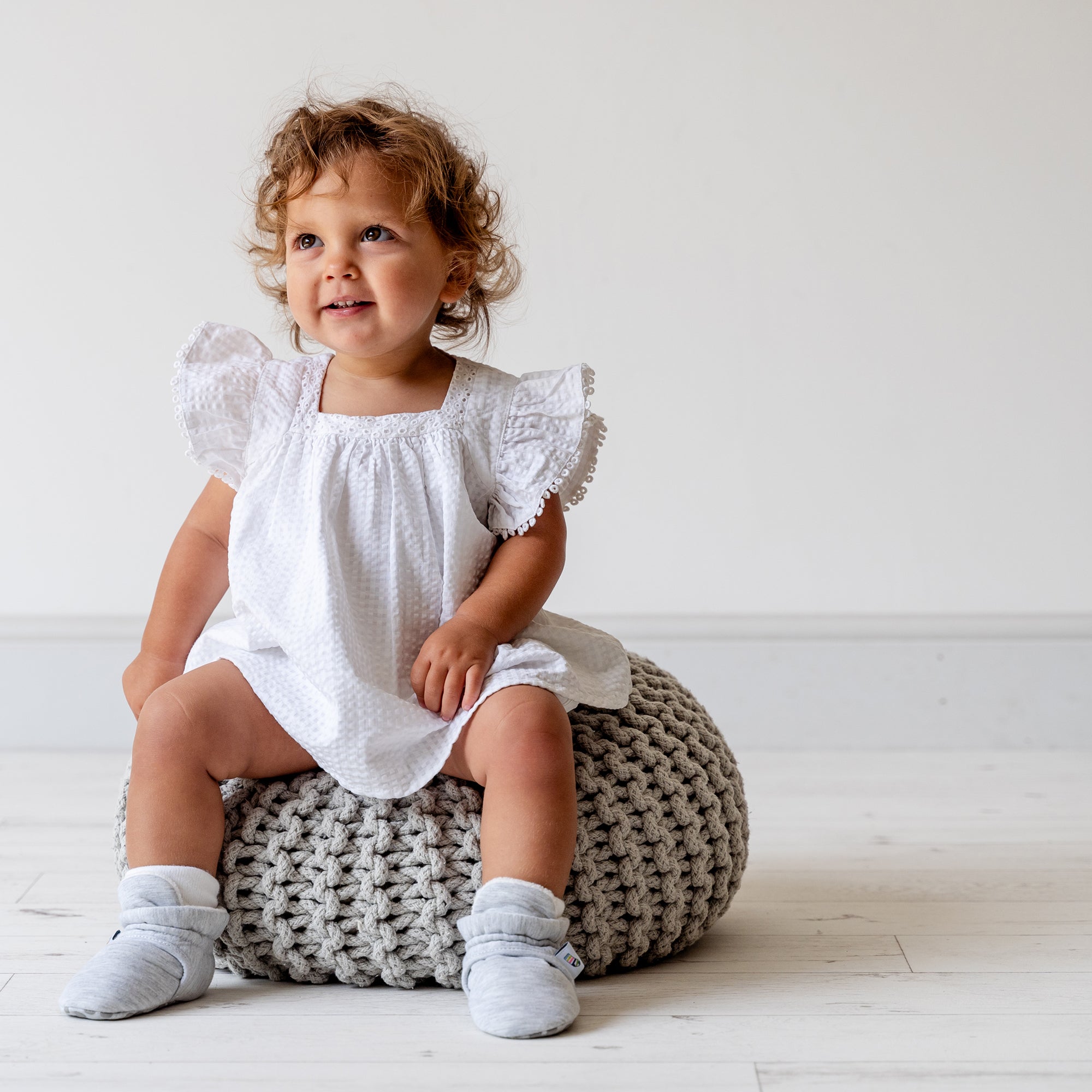 The bottom of the booties has a non-slip print so new walkers can safely toddler about in them.