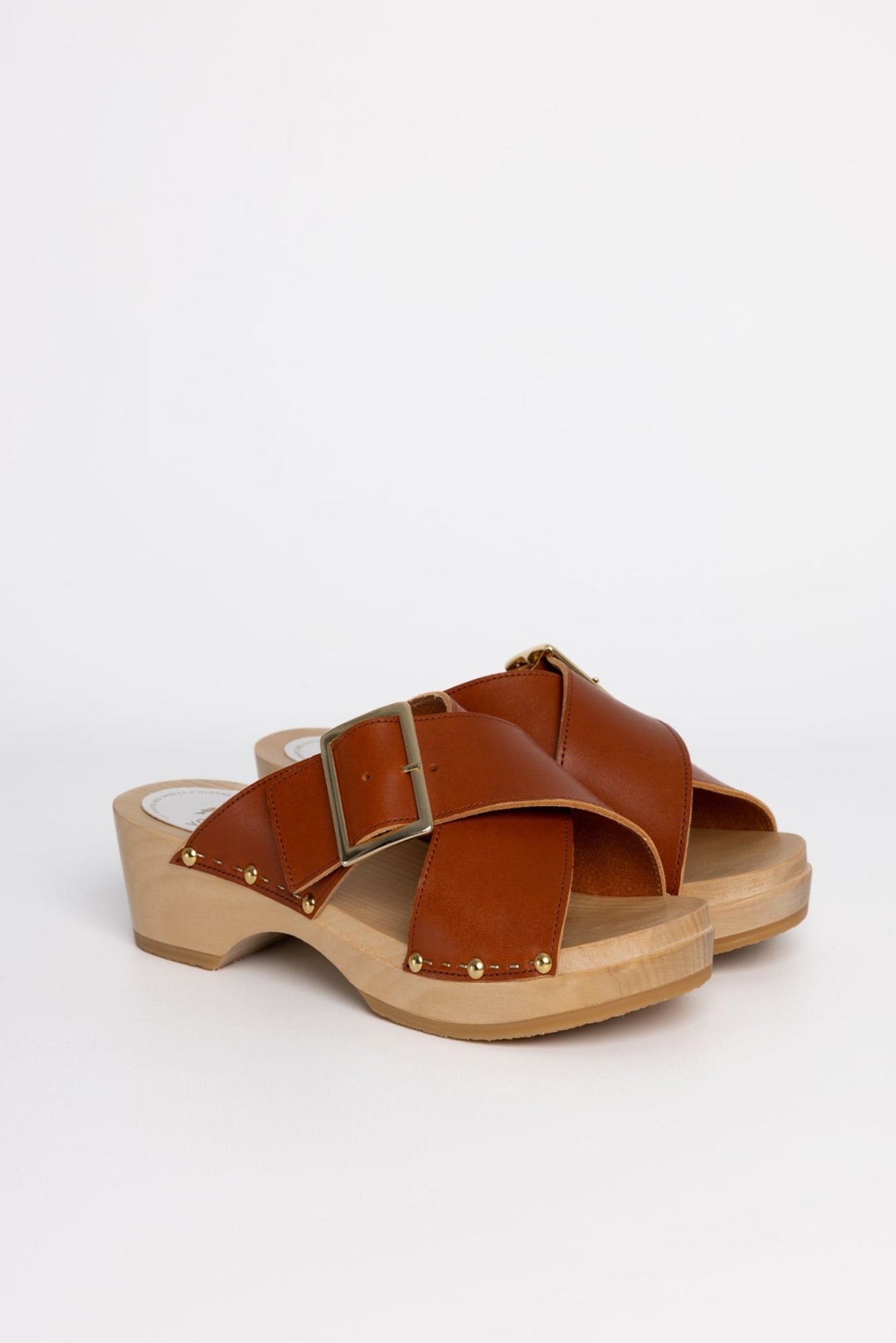 Les sabots sandales YAKIMA, fabriqués en cuir de vachette pleine fleur à tannage végétal, sont composés de deux larges lanières croisées enveloppant le coup de pied pour un maintien parfait.