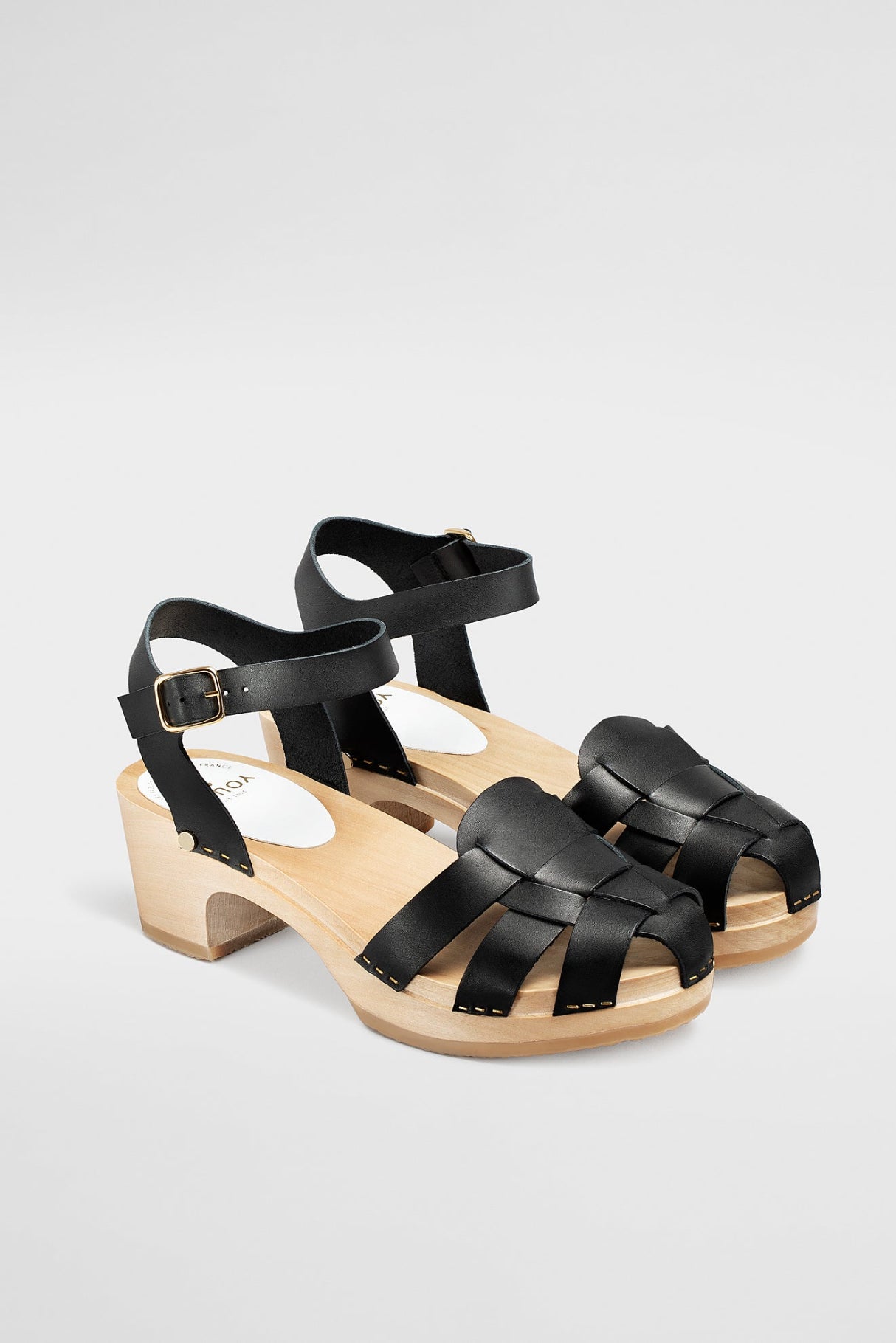 The YGGi sandal clogs, made from vegetable-tanned full-grain cowhide leather, are enhanced with a pretty braid.