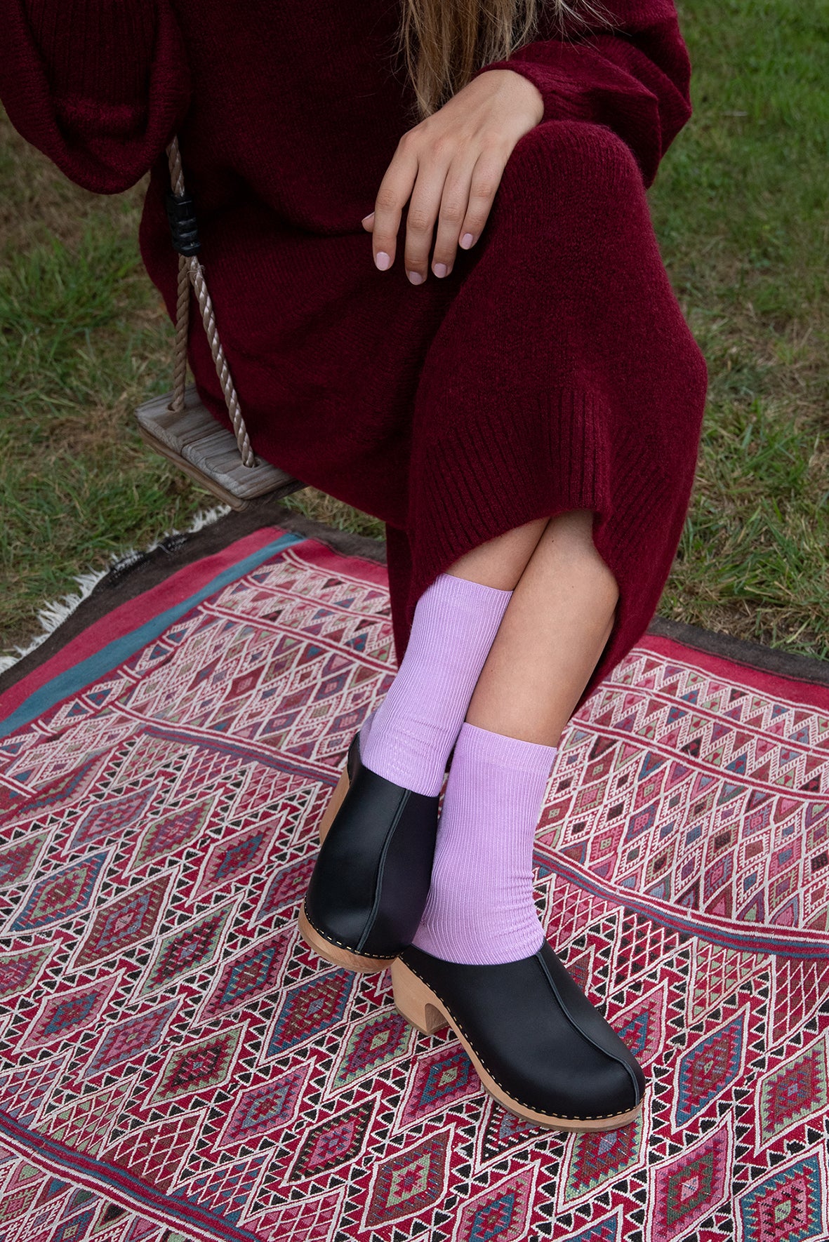 The YGREEN clogs, made from vegetable-tanned full-grain cowhide leather, are enhanced with a pretty reverse stitching on the upper.