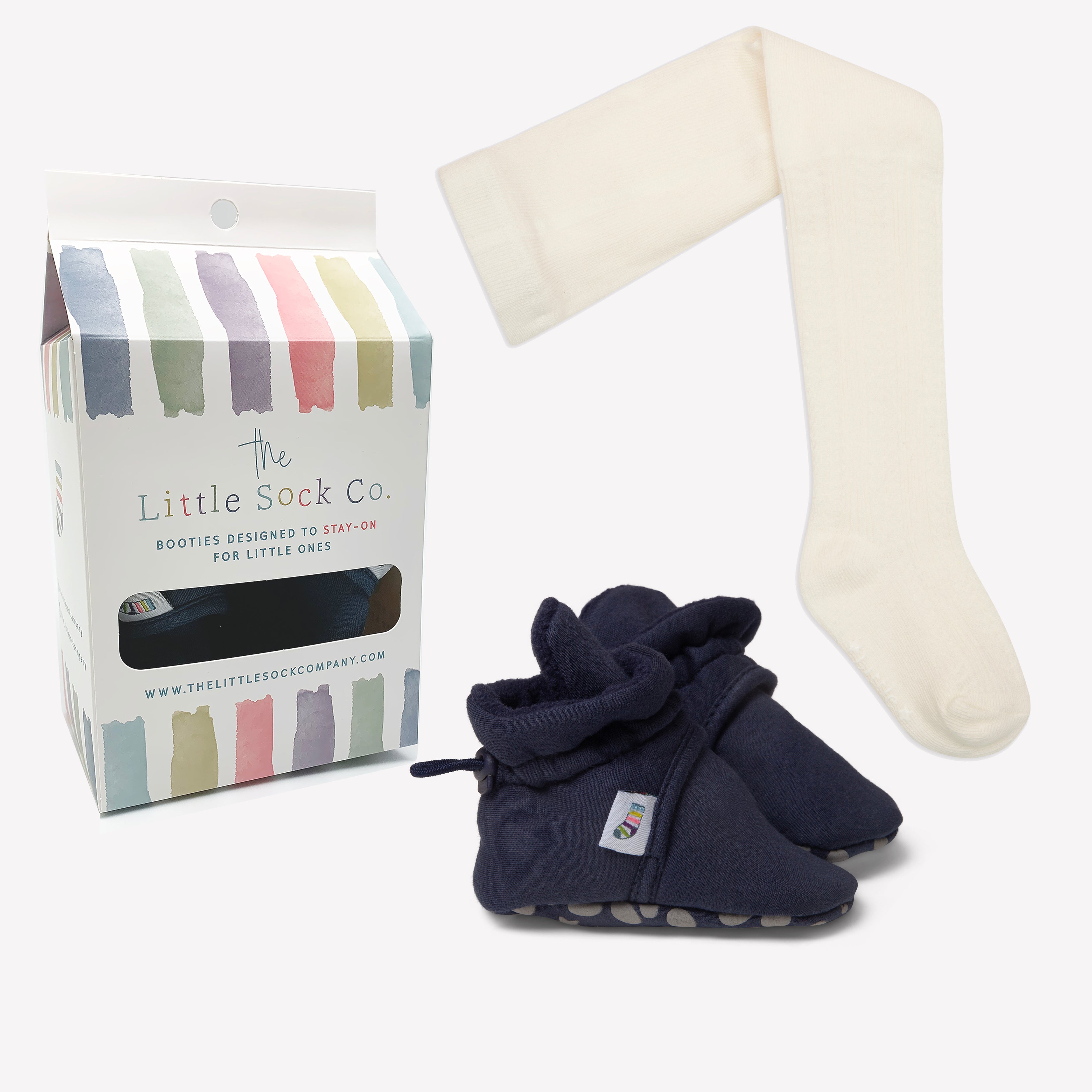 Keep little legs and feet safe and warm with this bundle of our soft stay-on baby booties & cosy non-slip tights.