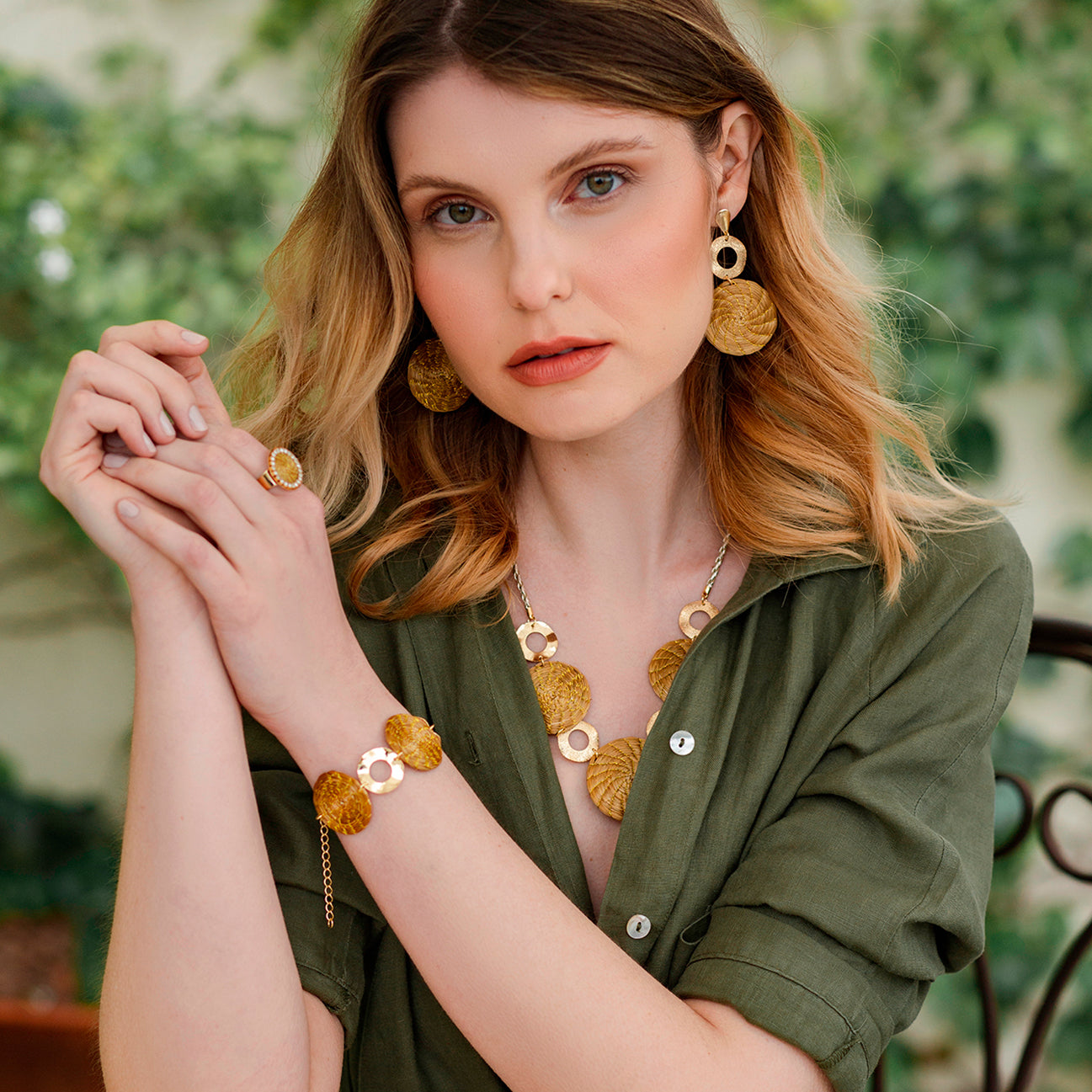 Kullattu sormus kultaisella ruohomandalalla ja kristallizirkonioilla