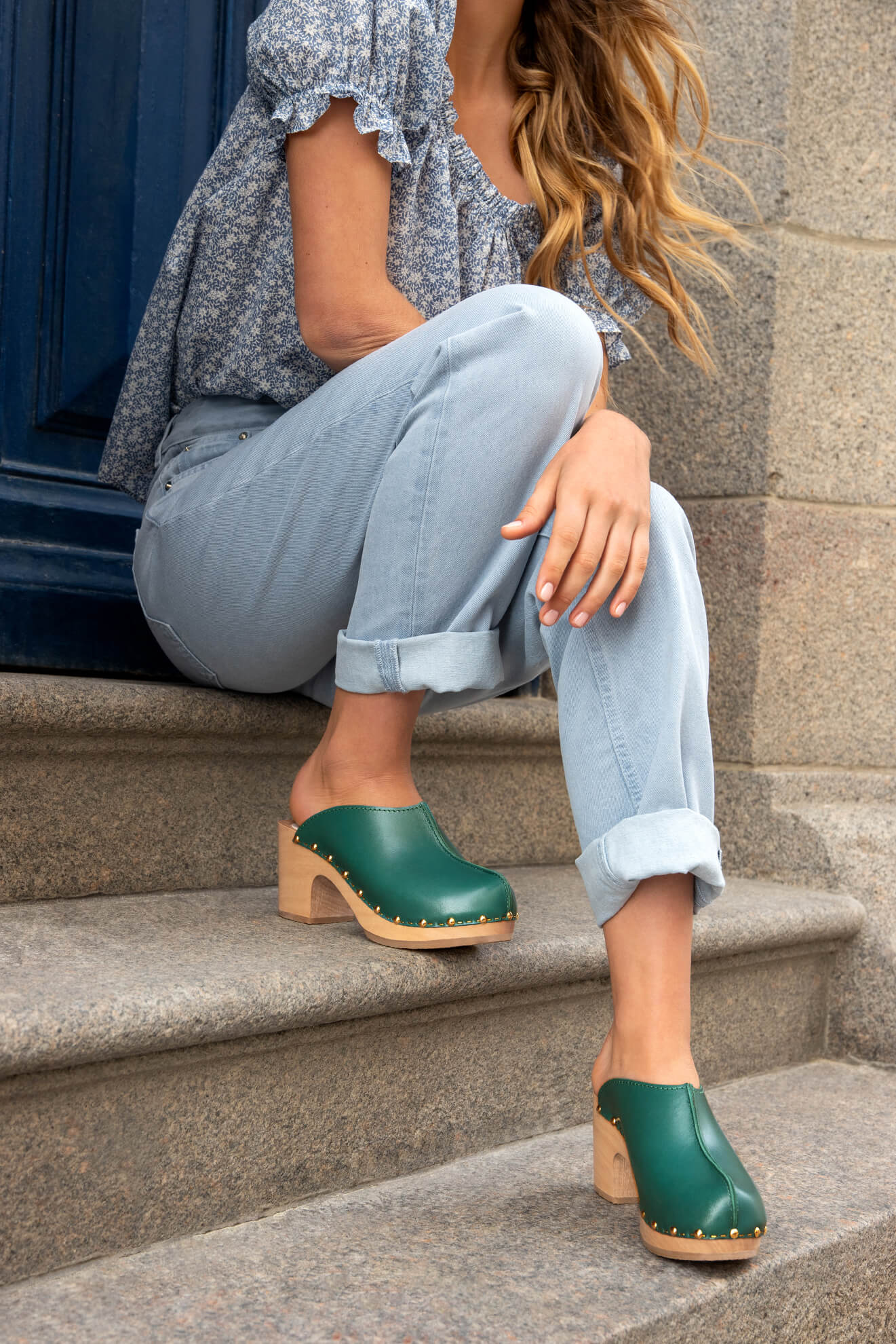 Les sabots YNDIES VEGETAL RIVIERA sont fabriqués en cuir de vachette pleine fleur à tannage végétal, dans une teinte vert profond et ensoleillé. Leur silhouette est rehaussée d'une couture inversée sur le dessus, signature subtile de notre savoir-faire.