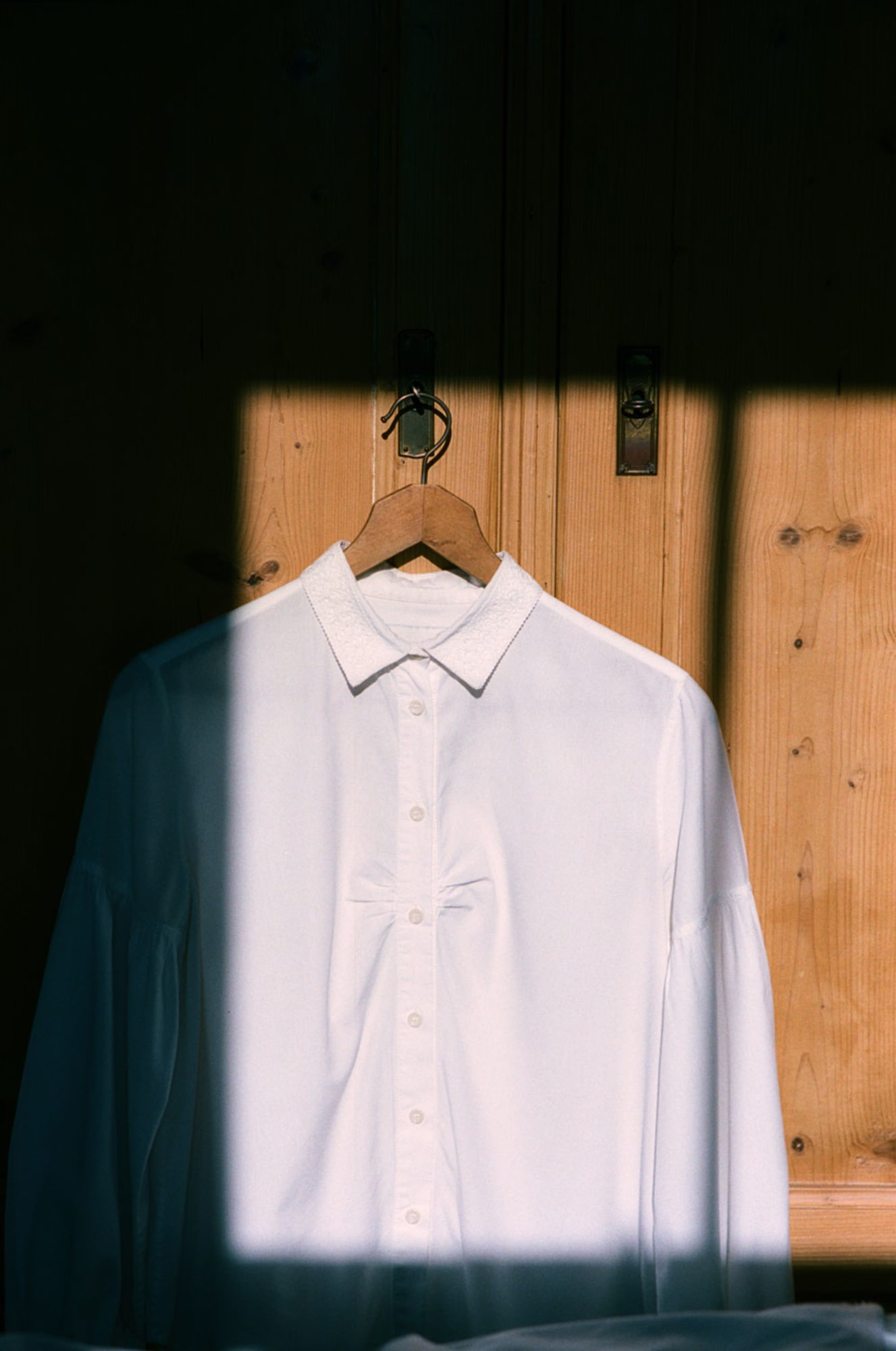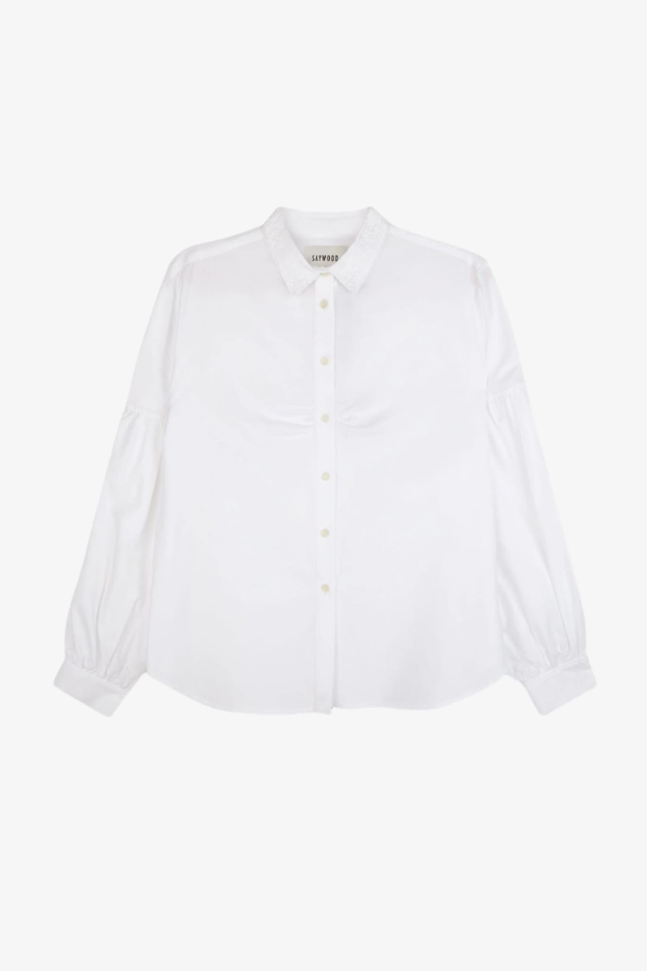 A true wear-forever piece, our Edi shirt is a feminine take on classic white shirting. Cut with a soft gathering at the bust to flatter all shapes, its neat silhouette is contrasted with dramatic full sleeves and lace detailing on the collars. Made from Supima cotton blended with environmentally friendlier bamboo, and finished with natural cream corozo buttons, it?s an essential that can be styled up or down.