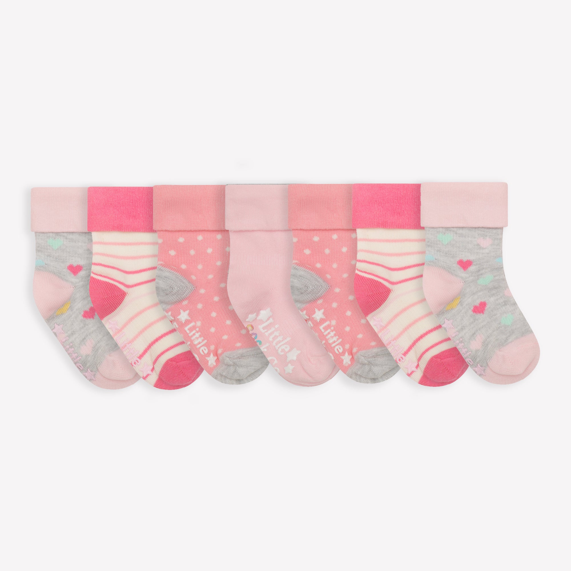 Non-Slip Stay On Baby and Toddler Socks - 7 Pack in Rainbow Pinks