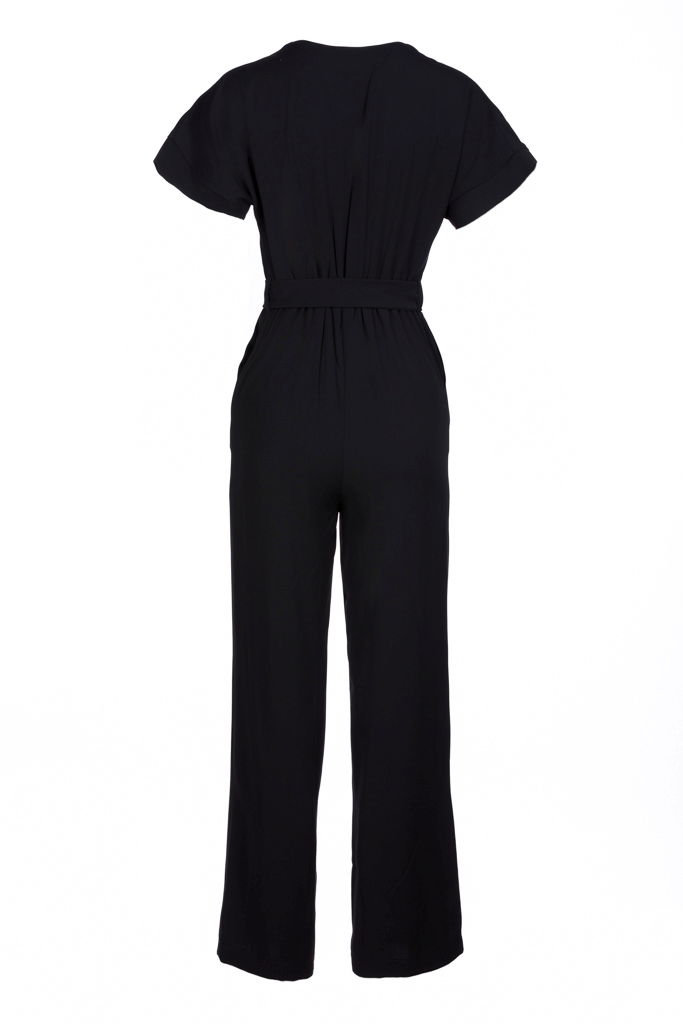 Are You Looking For Something Extraordinary And At The Same Time Comfortable? Well, This Wide-leg Black Jumpsuit Is For You. Made From Very Quality Polyviscose Fabric