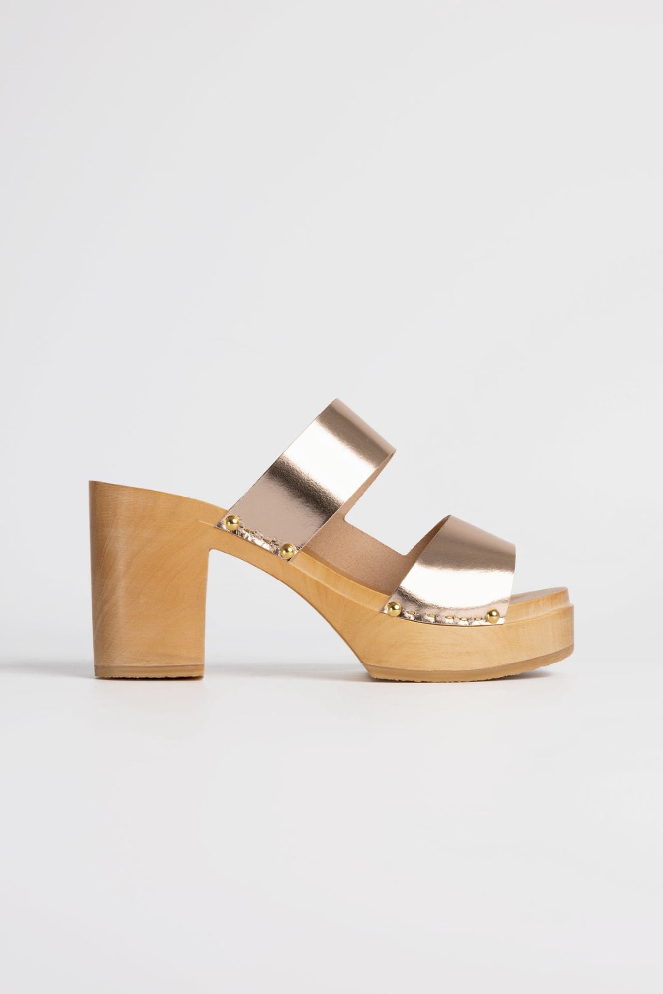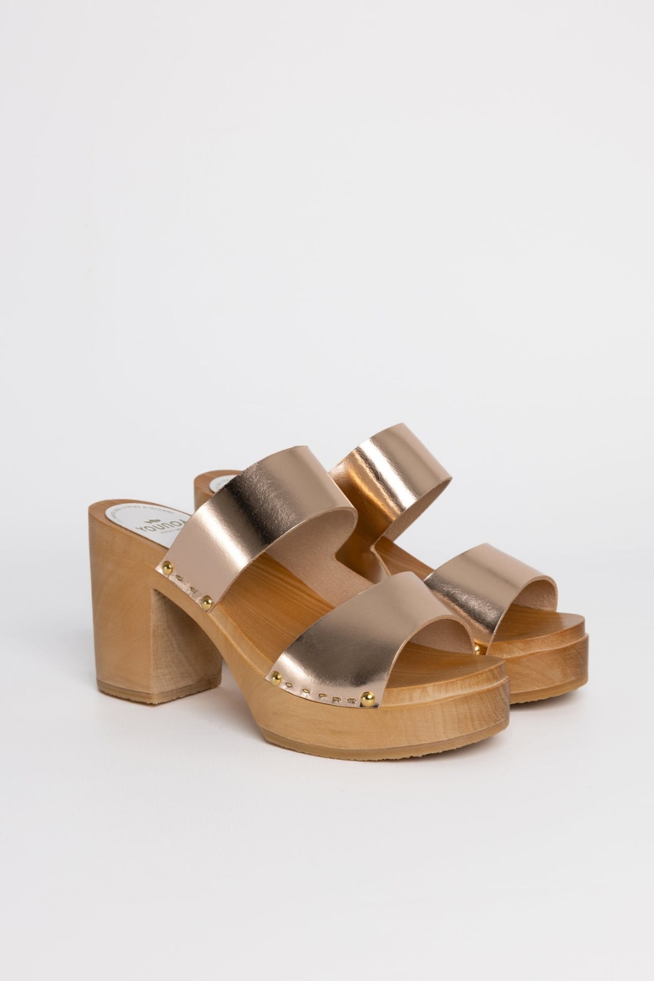 The YANIS LAMINATO mule clogs, made from vegetable-tanned full-grain cowhide leather, are made up of two straps that wrap around the foot for perfect support.